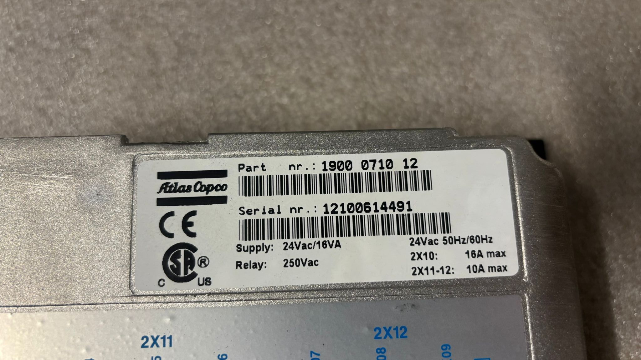 Atlas Copco Elektronikon II Part.No. 1900 0710 12 Serial.No. 12100614491