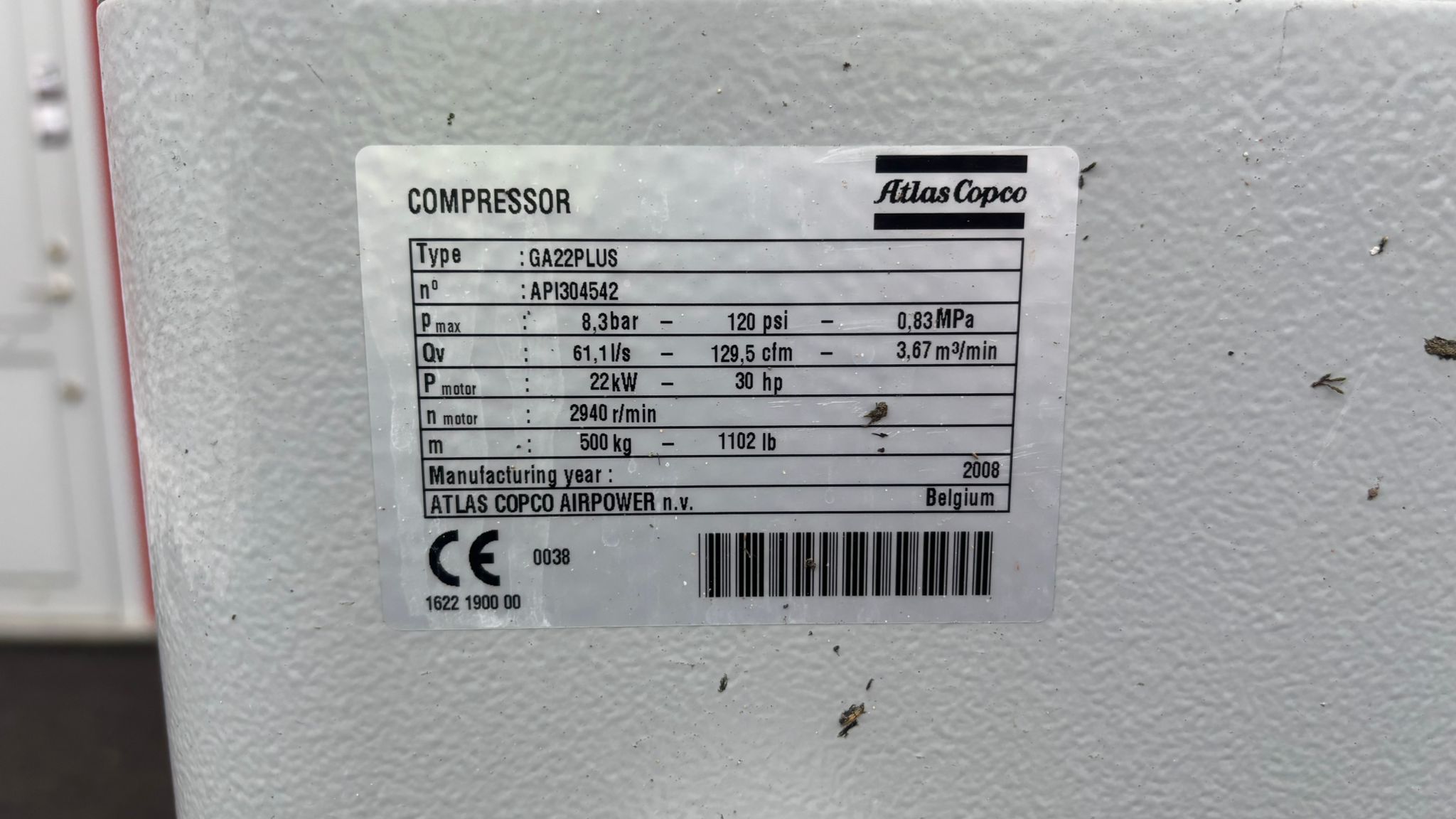 Atlas Copco GA 22 FF Sr.No. API304542 22 kW 8,3 bar
