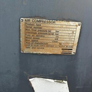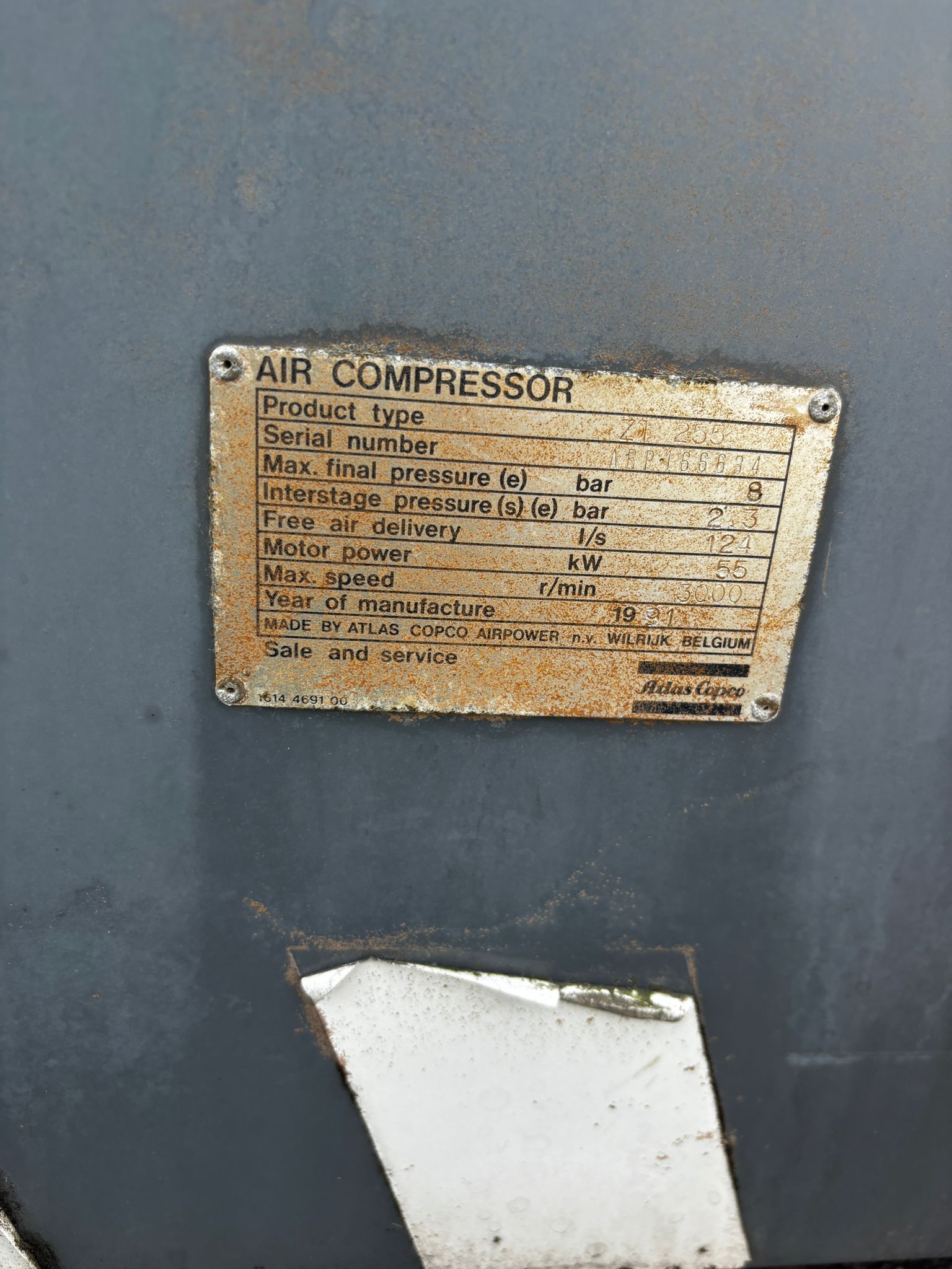 Atlas Copco ZT 255 Sr.No. ARP166634 8 Bar 55 Kw 124 L/S