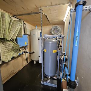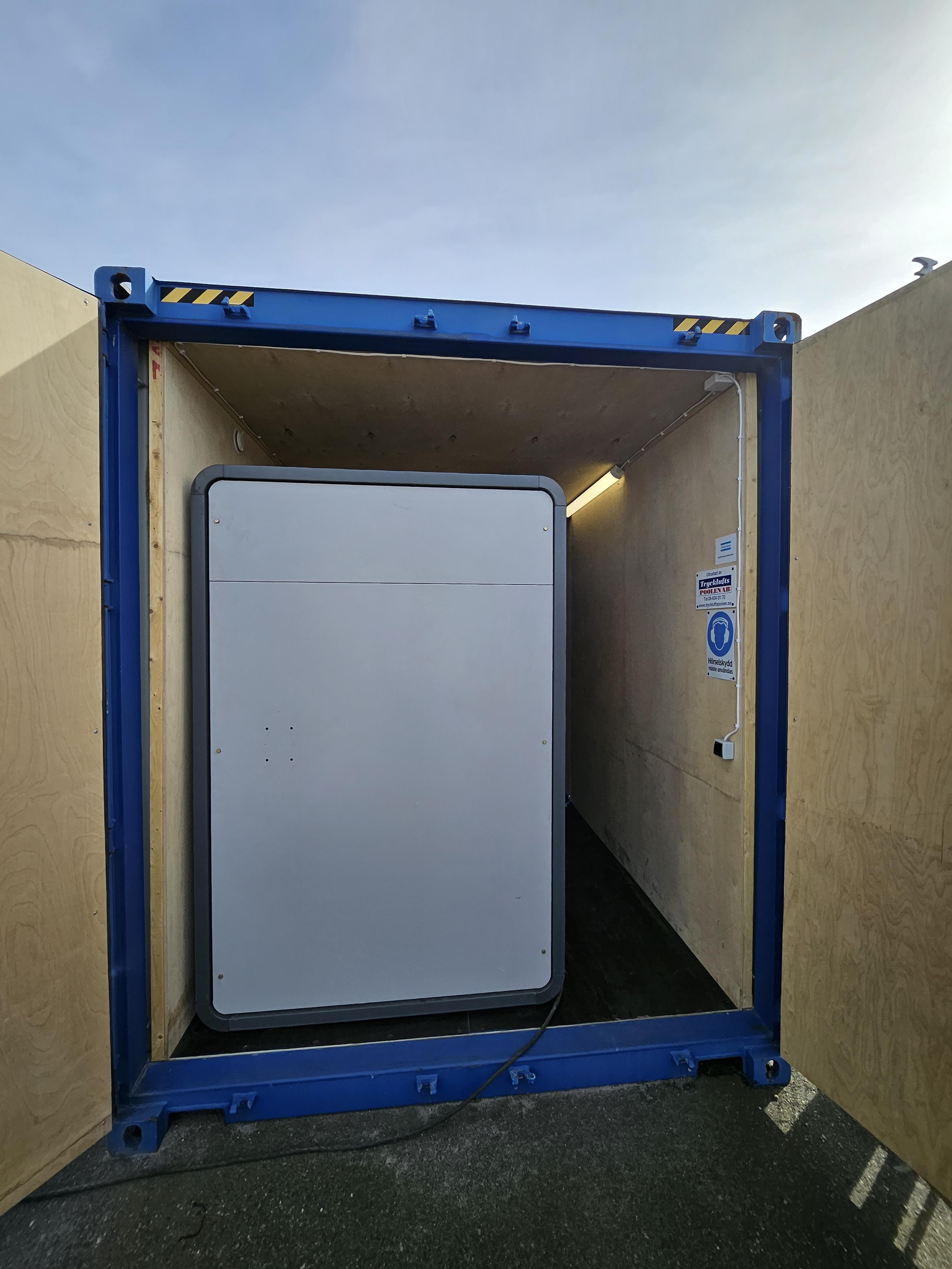 För uthyrning: en isolerad 20 fots kontainer (hög modell) som levererar oljefri luft enligt ISO 8573-1 klass 0.