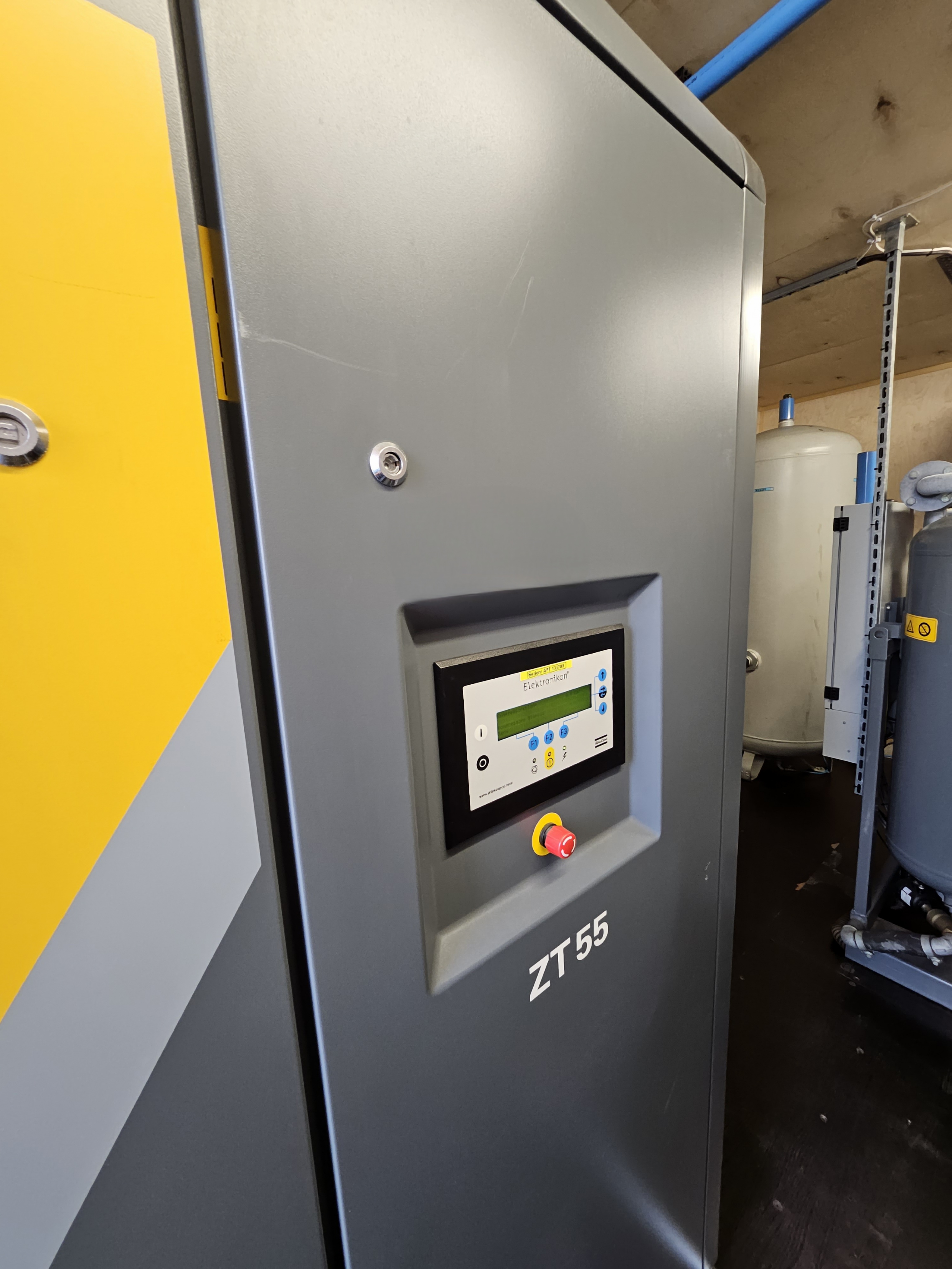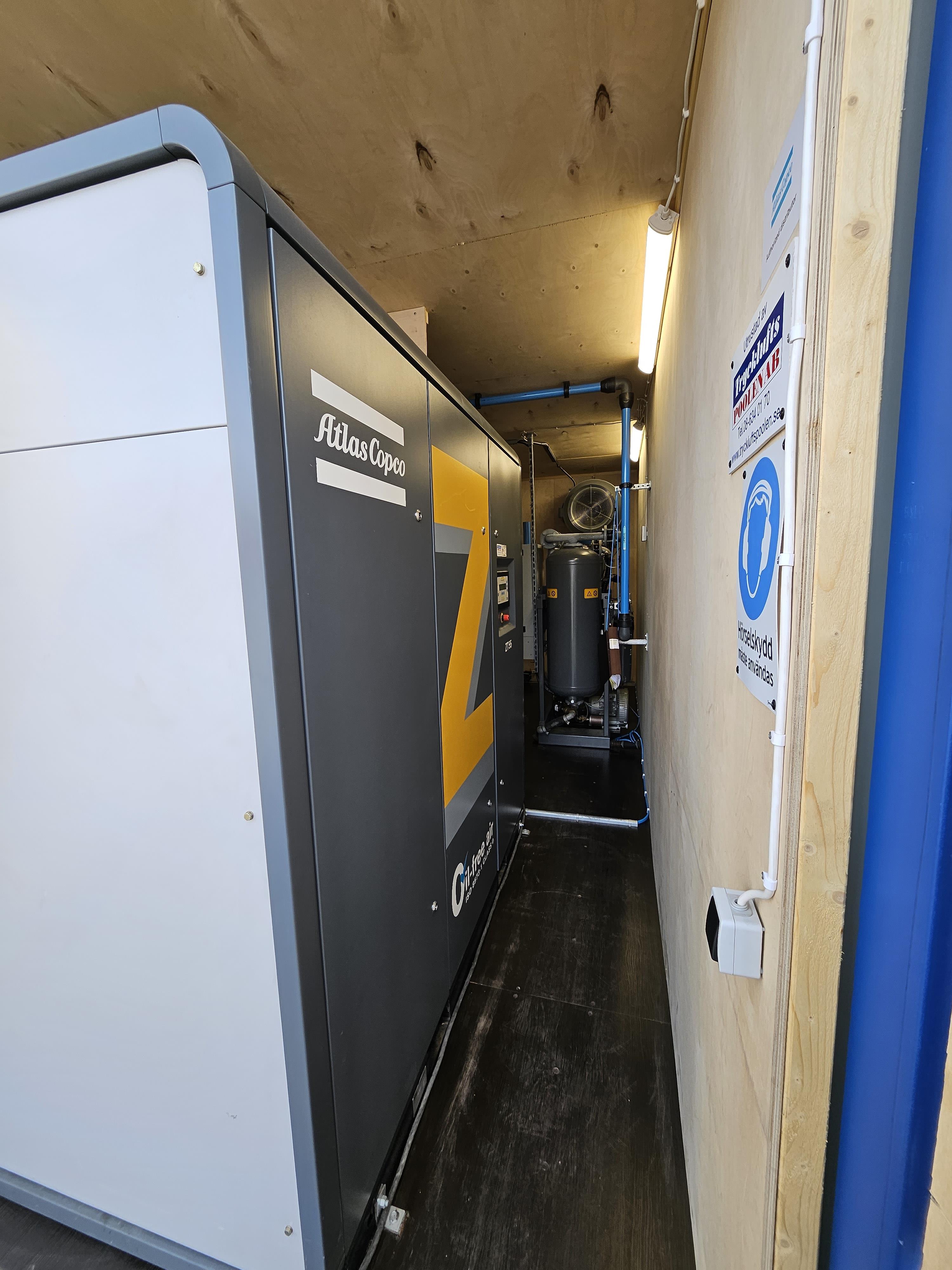 Kompressor: Atlas Copco ZT 55, Maxtryck: 7.5 bar, Motorstorlek: 55 kW, Kapacitet: 130 l/s