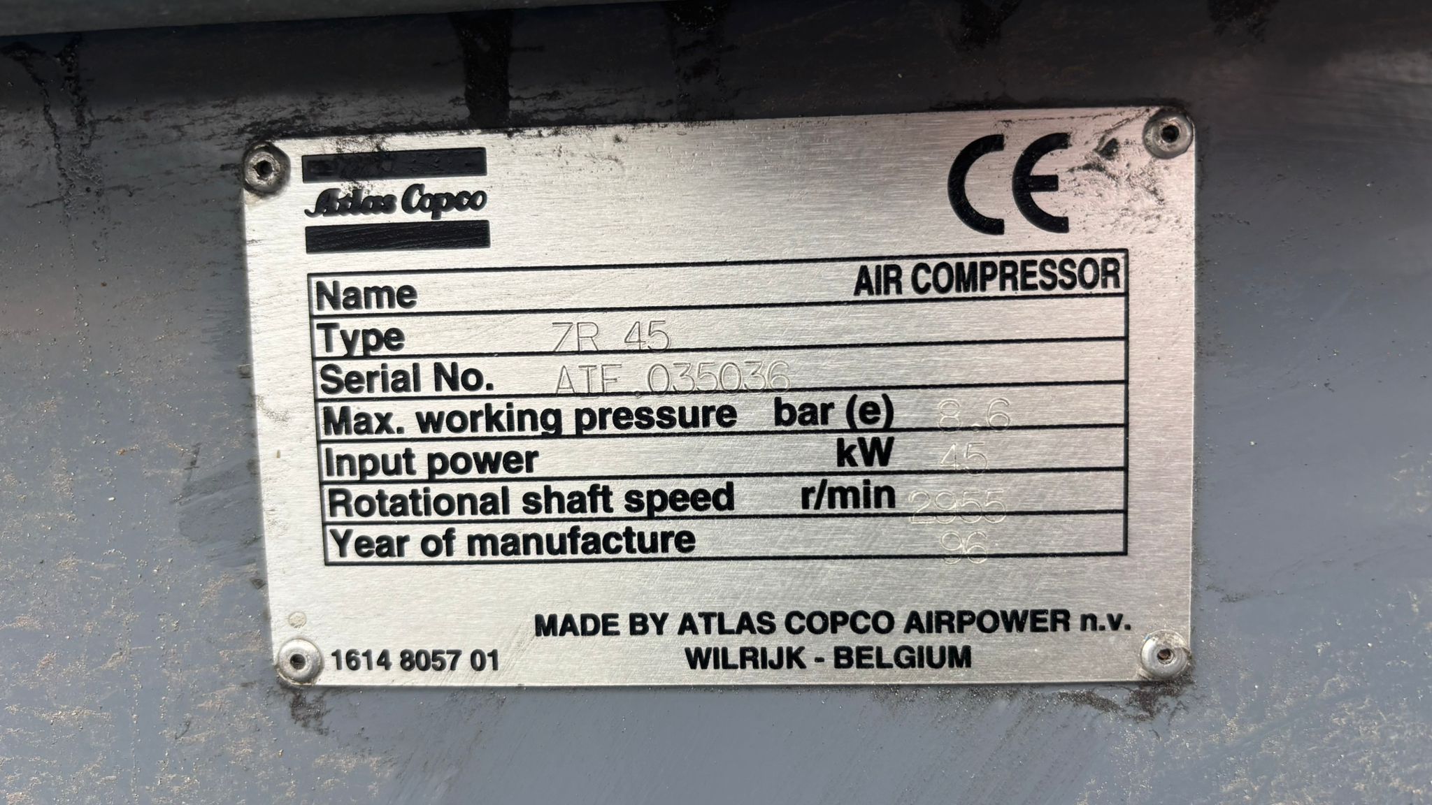 Atlas Copco ZR 45 Sr.No. AIF035036 45 kW 8,6 bar